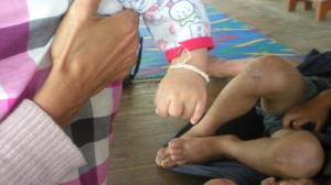 They believe this protects them and keeps the evil spirits away. To remove these strings, would cause much calamity and trouble for them, even death. They know no better way and are very afraid.