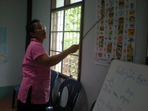MALEE: At 15 years of age Malee had a passion for teaching. She had an opportunity to teach at a school near the Burma border and taught there for one year. Her parents however wanted her to continue schooling, which she did, but still persued teaching even while attending school. Later she joined a school in a refugee camp here on the border and taught for over30 years. This joy of teaching came to an abrupt end however, when just less than one year ago a brain tumor was discovered on the right side. She underwent surgery at that time and recovered remarkably well. She believes this tumor was benign. She went back to her old job and resumed her duties there. However those working with her did not feel she could take on the work load she previously had and they let her go. She told me they thought she would die. But though disheartened at loosing her long term job, she actively sought other teaching opportunities. This incredible lady taught in 2 other schools short term and then came to the Medical Missionary Training with us, thinking that she could do the work of a medical misionary. During this training however, her desire to teach grew within her and she decided she would go to training for an updated teachers certificate and find a job teaching. She found a short term job immediately! You guessed it – teaching us the Thai language! She certainly is a professional teacher and did a wonderful job for one month with us. Now her desires are more completely filled as she has taken up a teaching position in a school not far from LKY on the Burma border. Please pray for her that she may remain in good health. That God may fulfill the desires of her heart for many more years if it is His will.